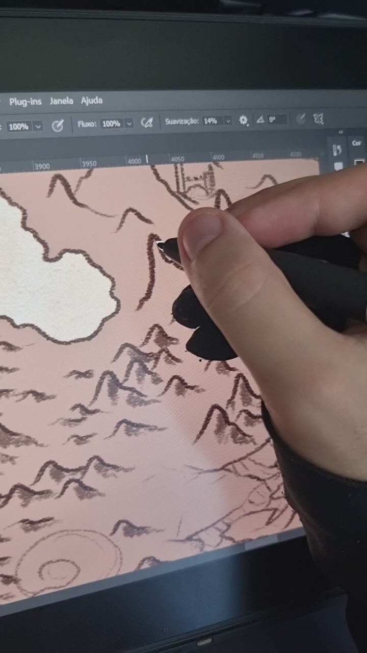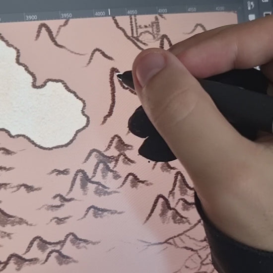 Hand-drawn by a professional map illustrator. No AI. Every mountain, coastline, ship, and compass rose was drawn by hand by a paid pro artist.