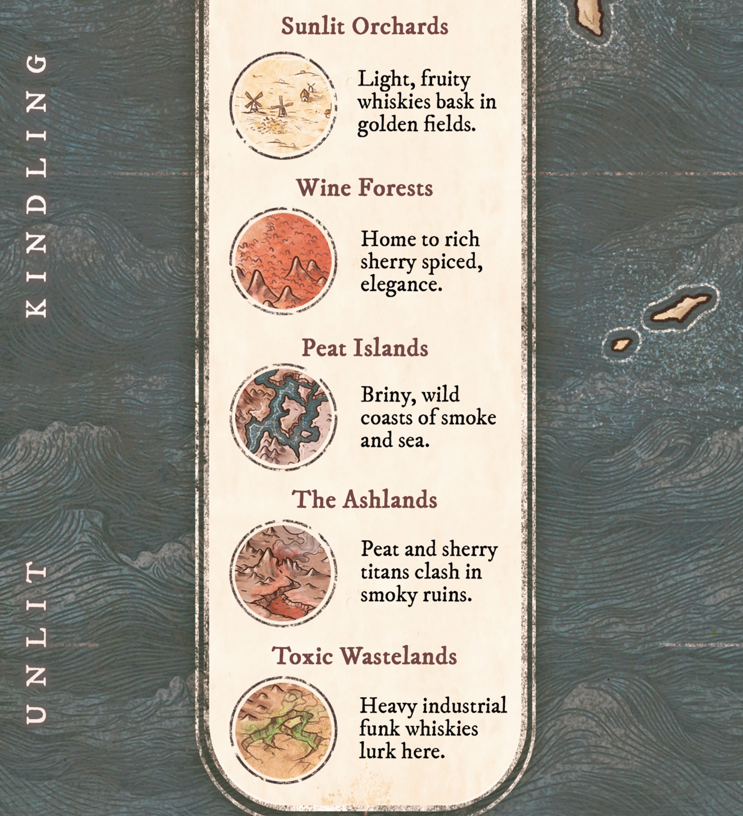 The "Whisky Flavour Map" design, including visual layout, flavour regions, names, structure, and world-building elements, is intellectual property protected under international copyright law. Unauthorized duplication—physical or digital—is strictly prohibited.