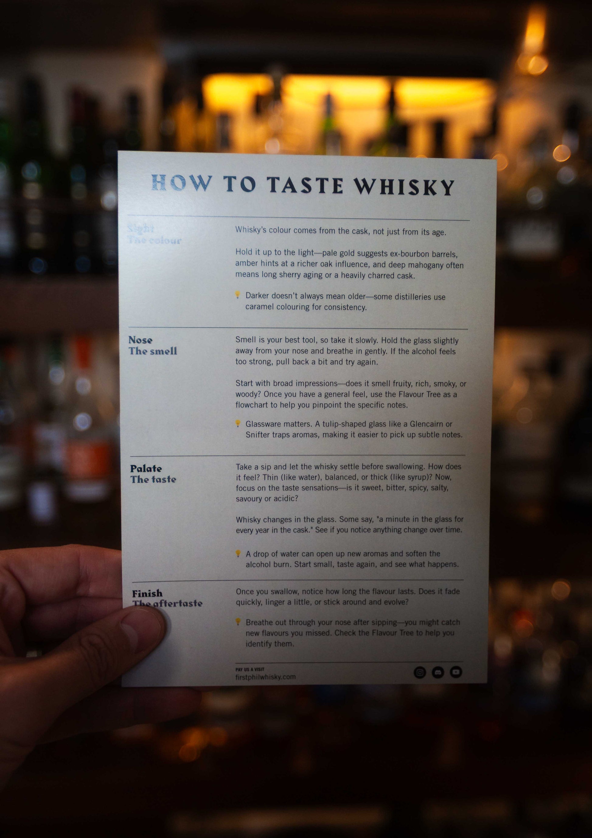 What makes these cards different? Unlike traditional whisky wheels or confusing flavor charts, the Flavour Tree uses an intuitive flowchart design that guides you naturally from broad impressions (fruity, smoky, rich) to specific notes (dried apricot, bonfire, toffee). Created by Phil Gow—one of the world's leading whisky communicators and founder of First Phil Whisky—this design distills years of tasting expertise into a simple, beautiful tool anyone can use.